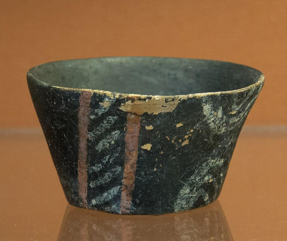 Taza de cerámica minoica del estilo Kamares con decoración en rojo y blanco, 1950-1850 a.C. (Periodo Medio Minoico Ib). Encontrada en Cnosos. Donada por Sir Arthur Evans. British Museum. Zde – Own work. CC BY-SA 4.0. Original file (2,325 × 1,958 pixels, file size: 3.14 MB).