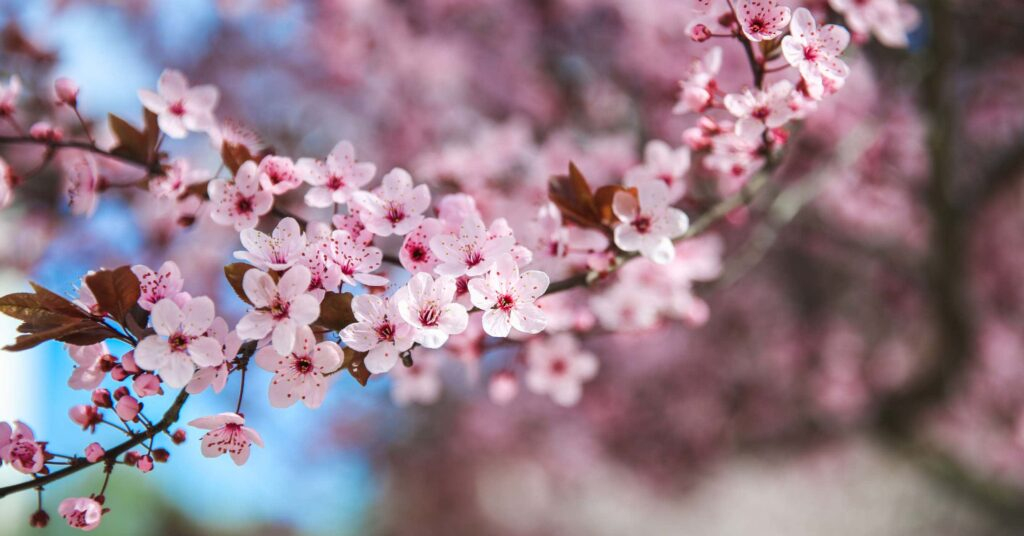 Estos árboles se cultivan ampliamente en jardines, parques, avenidas y espacios urbanos de clima templado. Son originarios de Asia y de otras regiones templadas del hemisferio norte, y se han difundido por todo el mundo por su valor ornamental. La imagen recoge una rama cubierta de delicadas flores rosadas, abiertas en plena primavera. Los pétalos claros, con centros más intensos, se distribuyen a lo largo de la rama y crean una composición suave y luminosa, acentuada por el fondo desenfocado. Esta floración efímera es uno de los espectáculos más bellos de la estación: anuncia la renovación de la naturaleza tras el invierno y transforma el paisaje con una presencia ligera y casi etérea. En muchas culturas, especialmente en Japón, estas flores simbolizan la belleza fugaz, el paso del tiempo y la fragilidad de la vida.