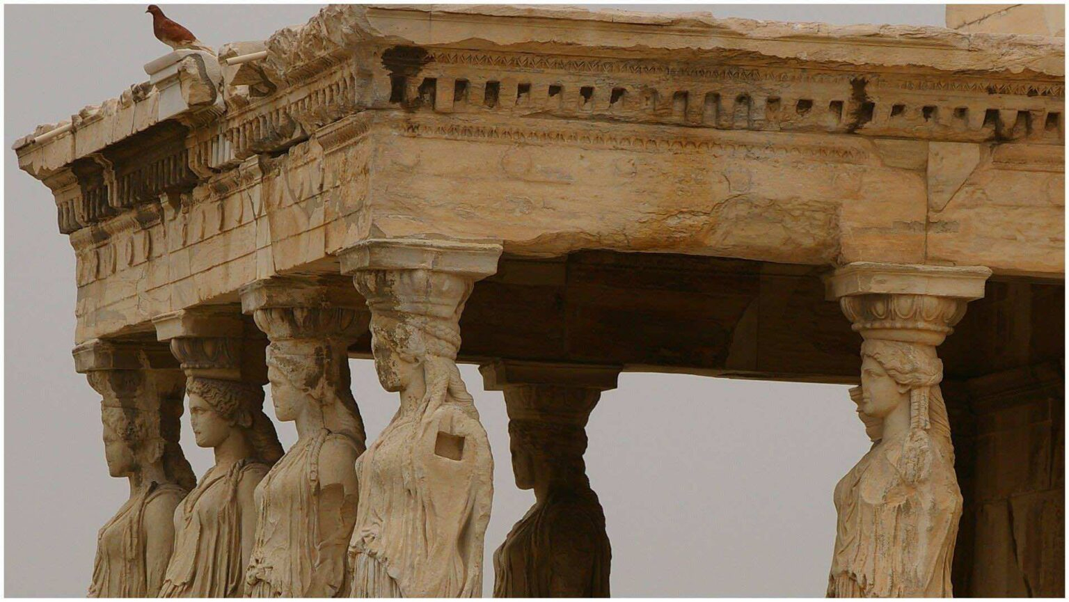 Muchas cosas admirables hay y ninguna más admirable que el hombre.(Antígona de Sófocles) El pórtico de las cariátides en el Erecteión es el ejemplo mejor conservado de columnas antropomórficas de la antigüedad griega, y es por tanto el más famoso. El Erecteión hace parte del proyecto de Pericles de colmar a Atenas de belleza y prestigio a través de la reconstrucción de su acrópolis; ésta había sido destruida con la invasión persa durante la segunda guerra médica, de la que Grecia había salido victoriosa. El Erecteión fue edificado en un periodo de confianza y orgullo griego, dentro del que se desarrolló el arte clásico, junto a su interés por la naturaleza humana, la armonía y la belleza. De esta manera, este pórtico y sus seis cariátides contienen tanto del esplendor de la Atenas de Pericles como la concepción clásica de la arquitectura, la escultura y el cuerpo humano.