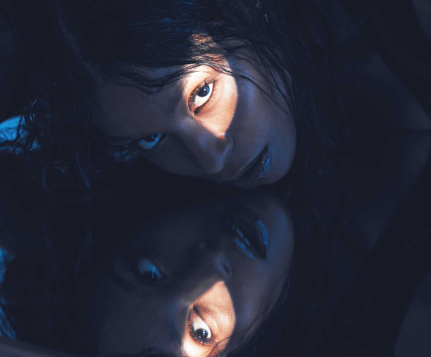 La escena muestra un rostro que emerge entre luces y sombras, detenido frente a su propio reflejo. No hay artificio ni distracción: solo la presencia inmediata de una persona que se mira y se reconoce, como si en ese instante suspendido encontrara la verdad íntima que las prisas del mundo suelen ocultar. Esa doble mirada —la exterior, dirigida hacia la cámara, y la interior, proyectada en el espejo— expresa con una fuerza silenciosa lo que las humanidades aportan a la vida humana: la posibilidad de detenerse, de pensar, de profundizar en uno mismo y de nombrar aquello que no se ve a simple vista.