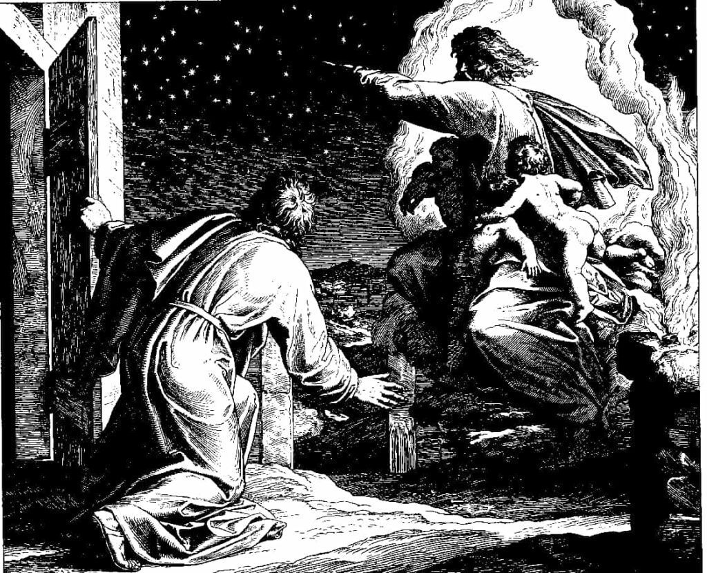 Inspiración bíblica en el arte. Julius Schnorr von Carolsfeld, Dios le muestra a Abraham las estrellas, grabado, 1860. La palabra de Dios es fuente de esperanza para Abraham y fuente de inspiración en el arte: «Ahora mira al cielo y cuenta las estrellas, si te es posible contarlas. Y le dijo: Así será tu descendencia.» —Génesis 15:5. Julius Schnorr von Carolsfeld – Der Literarische Satanist. Dominio Público. Woodcut for «Die Bibel in Bildern», 1860.