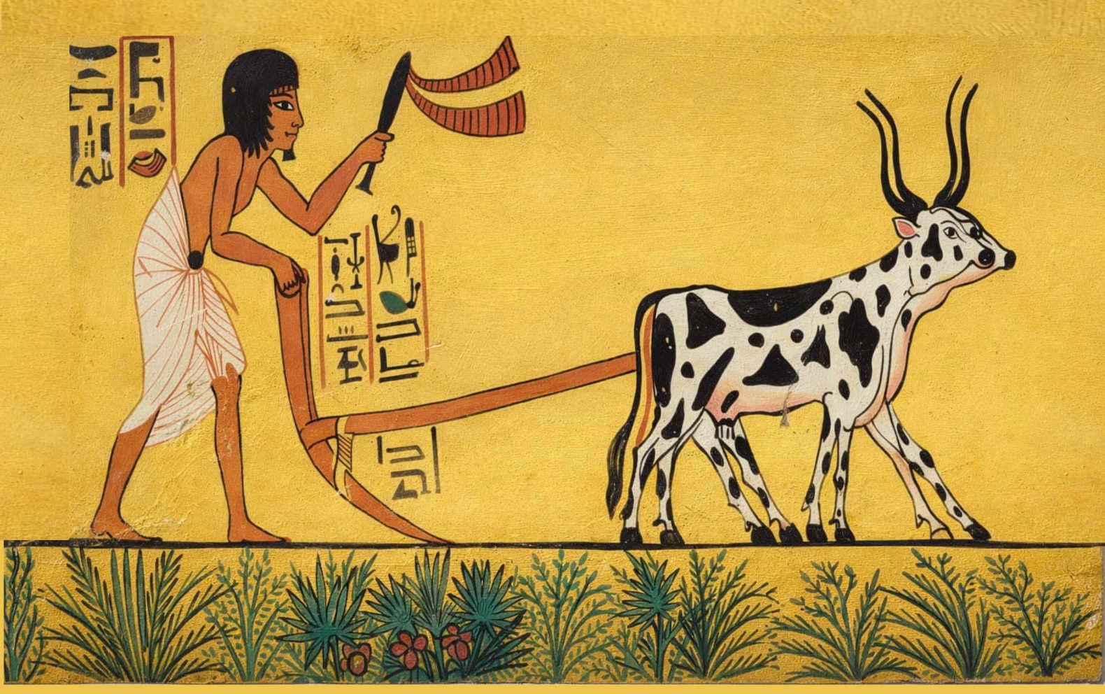 Grabado egipcio con temática agrícola (hacia el 1200 a. C.). The Yorck Project (2002) 10.000 Meisterwerke der Malerei (DVD-ROM), distributed by DIRECTMEDIA Publishing GmbH. Dominio Público.