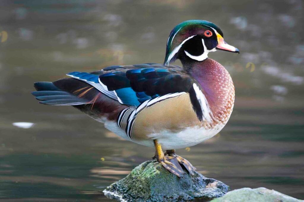 Pato joyuyo, pato de Carolina o pato maderero (Aix sponsa), una de las anátidas más vistosas de América del Norte. Color, discreción y vida entre humedales.