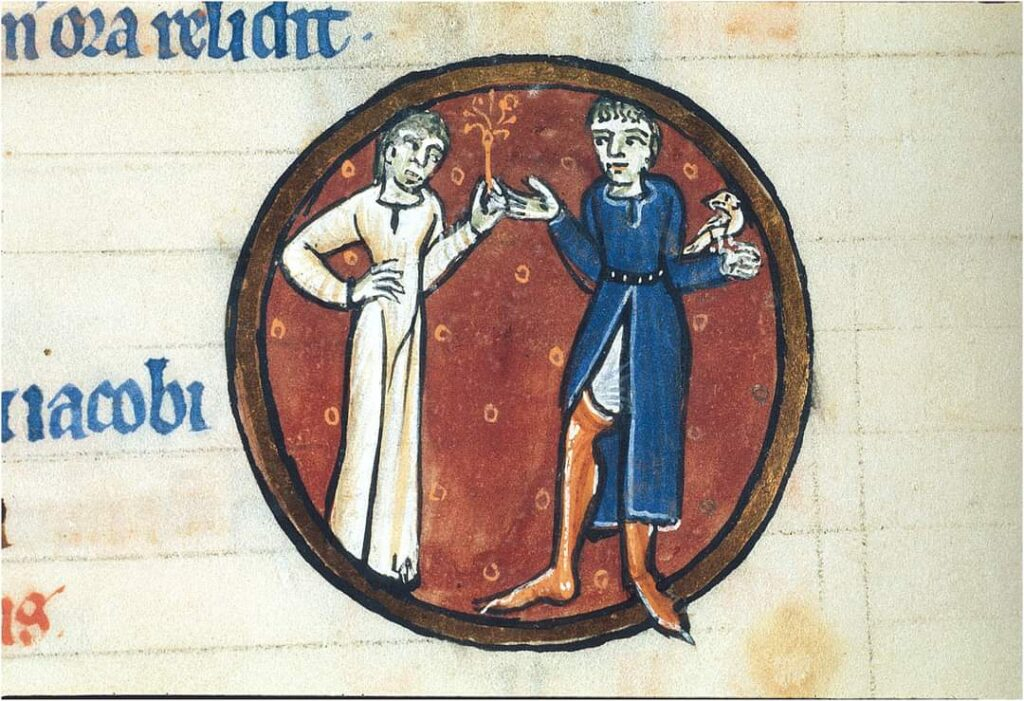 Arundel 157 f. 15 Courting scene