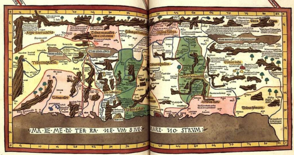 La recuperación de la Cosmografía de Claudio Ptolomeo en el siglo XV, supuso el paso de mapas en libros a libros de mapas y la apertura hacia la cartografía moderna europea. Los mapas que acompañan a las más antiguas ediciones de la Geographia de Ptolomeo constituyen el modelo para casi todos los atlas geográficos publicados desde la invención de la imprenta.