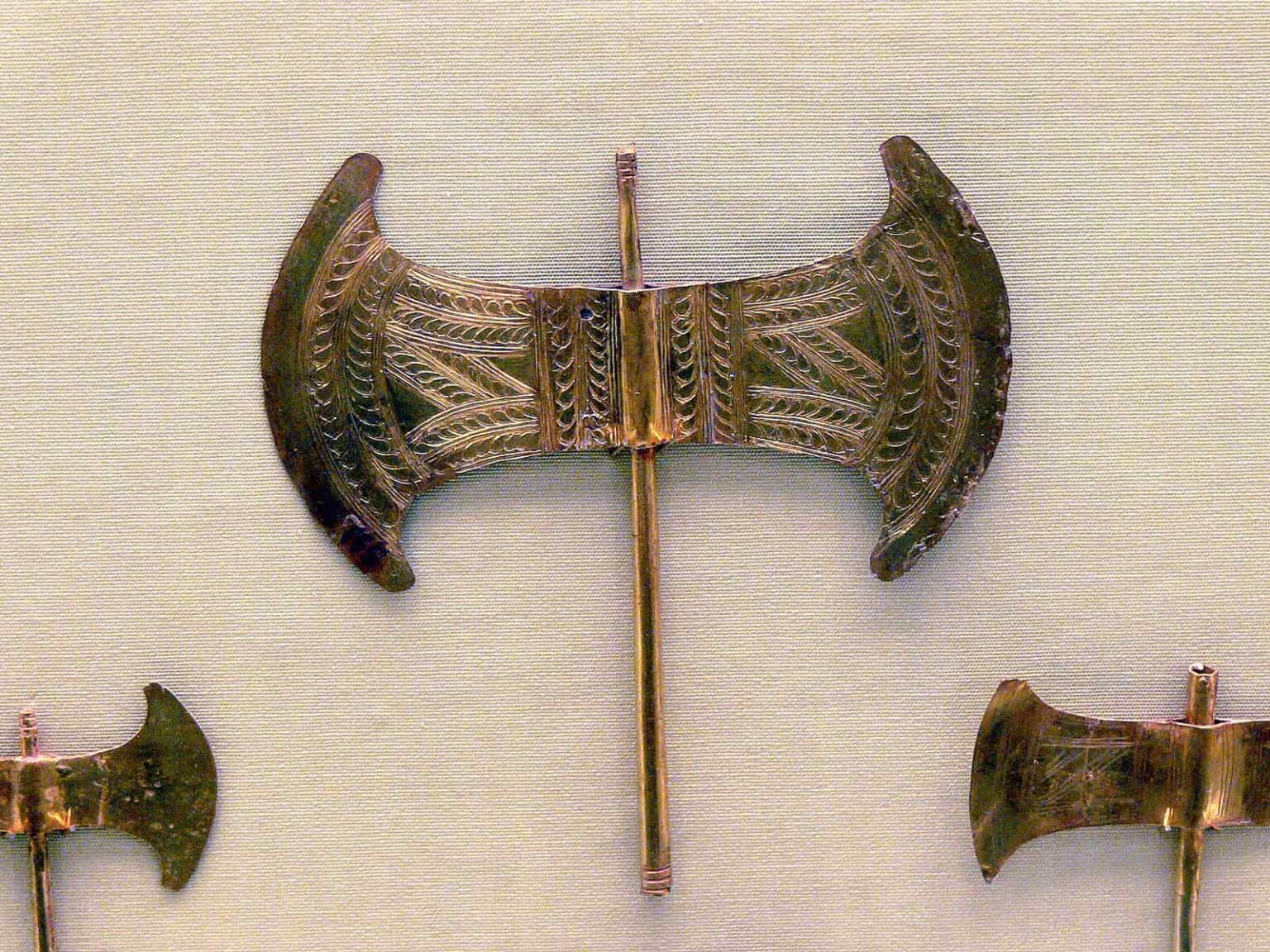 Joyas de oro con forma de labrys (doble hacha). Wolfgang Sauber.- CC BY-SA 3.0.