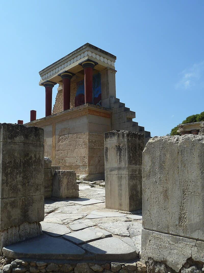 Reconstrucción del salón del trono del palacio de Cnosos. Olaf Tausch. CC BY 3.0.