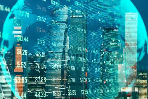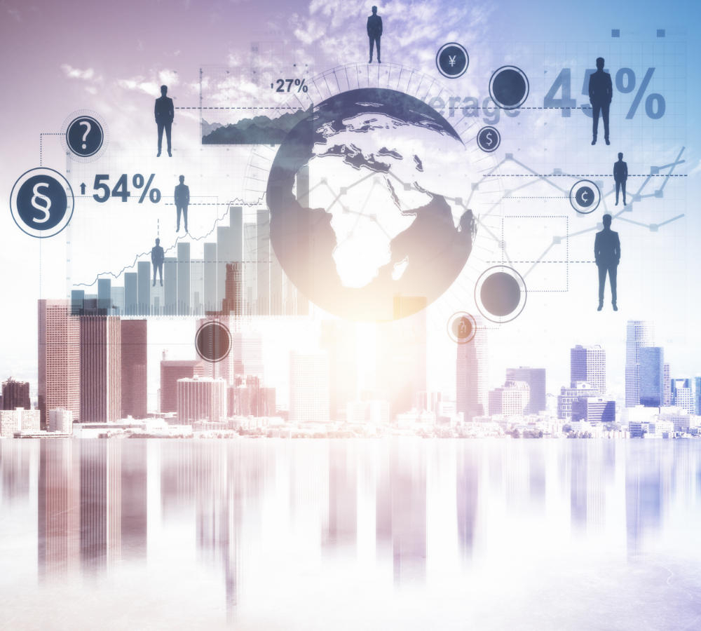 Economía global y evolución de los mercados: gráficos y datos sobre el mapa del mundo — © GoldenDayz en Envato Elements.