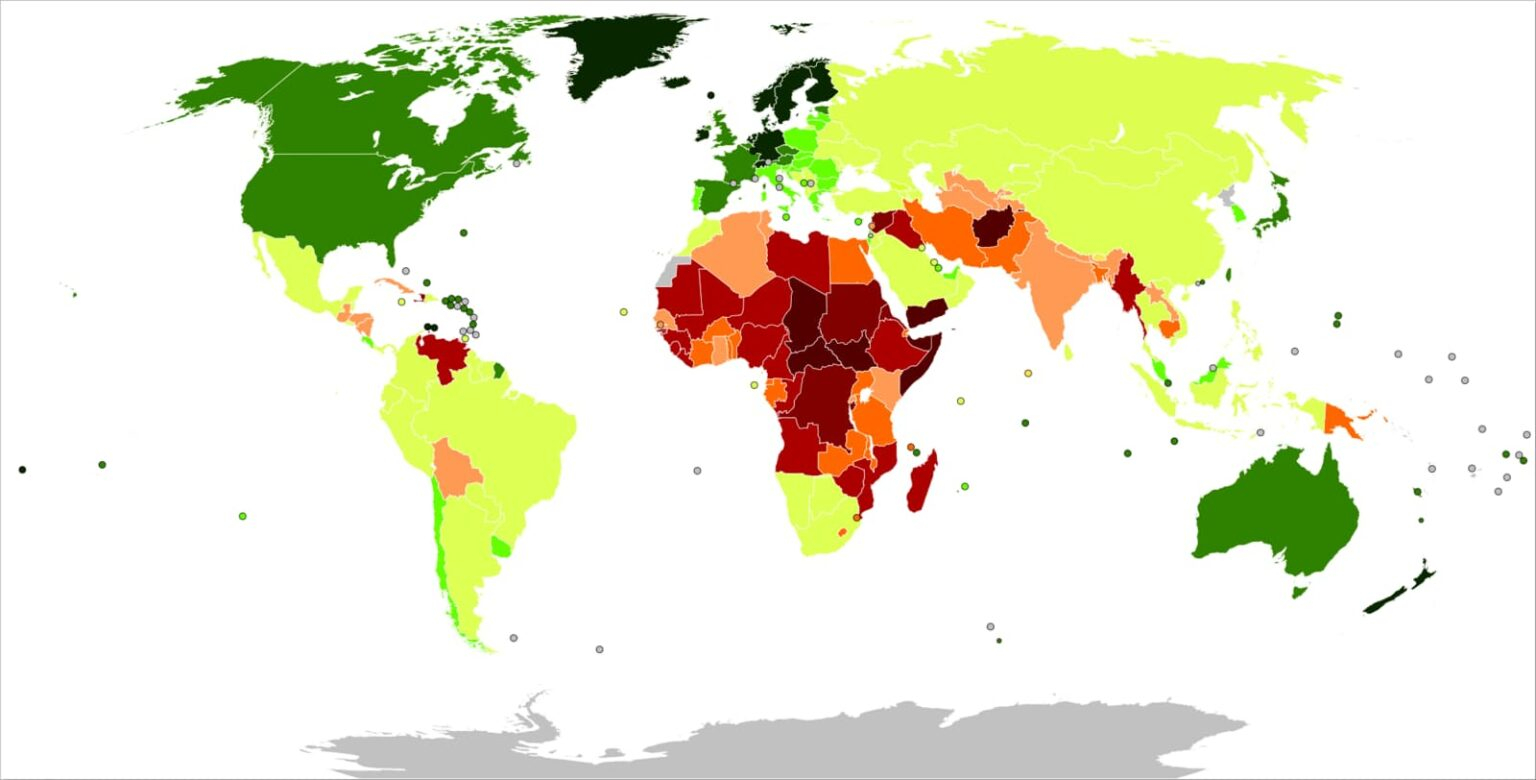 Mapamundi físico. Fuente: US Government, Central Intelligence Agency. – Physical map of the world; from the CIA World Factbook. Dominio público. 2,560 × 1,299 pixels.