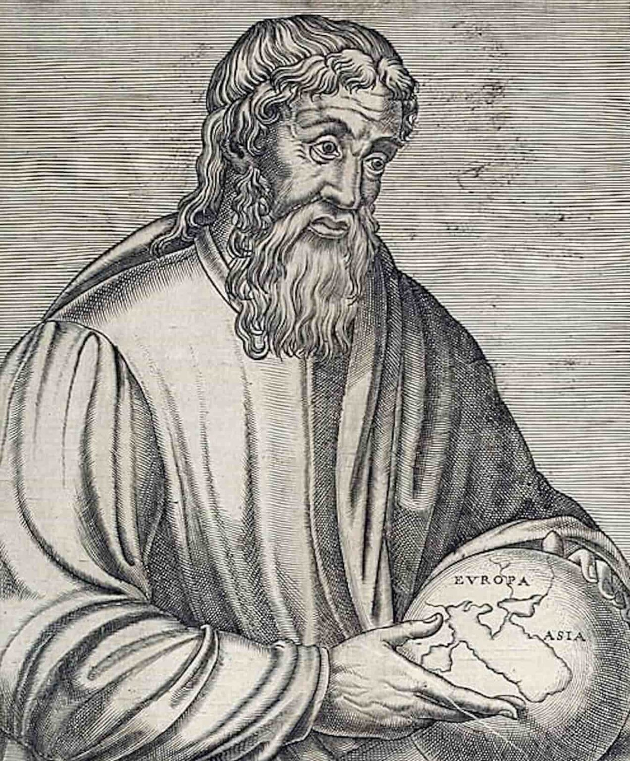 El primer autor en utilizar la palabra geografía fue Eratóstenes (276-194 a. C.) en una obra hoy en día perdida. Sin embargo, la fundación de la geografía se le atribuye al también considerado padre de la historia, Heródoto (484-420 a. C.). Para los griegos es la descripción racional de la Tierra y, particularmente para Estrabón, es el estudio de las distintas regiones humanas como base para la formación del político.