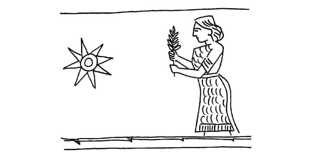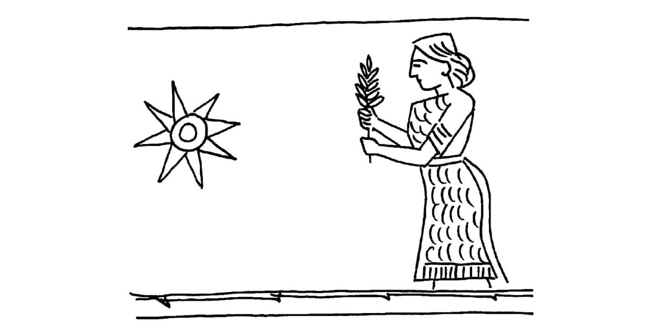 La diosa Shala, antecesora de Virgo en una tabla astrológica de la era seléucida, aunque probablemente una copia de un documento más antiguo que data de principios del I milenio a. C. Autor: Roland E. Laffitte. CC BY-SA 4.0.