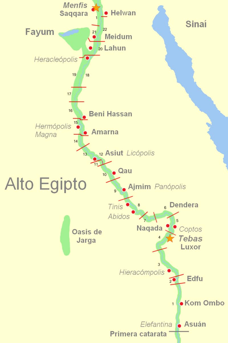 El proceso comienza con la unificación de las Dos Tierras, es decir, el Alto Egipto (valle del Nilo, al sur) y el Bajo Egipto (delta del Nilo, al norte). Antes de esta unificación, Egipto estaba compuesto por múltiples nomos o regiones autónomas, cada una con su propio líder, divinidad local y cultura material. Durante el último tramo del periodo predinástico (especialmente en la cultura Nagada III), el Alto Egipto, más cohesionado política y militarmente, comenzó a imponerse sobre sus vecinos del norte.