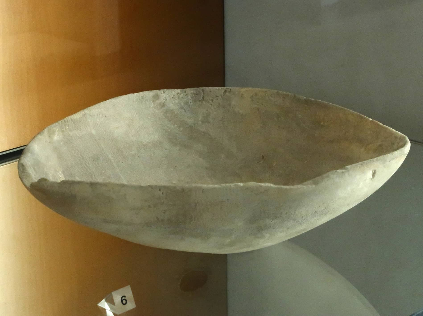 Copa color verde. (Material desconocido). Tamaño: 12,4 cm x 23 cms.). Periodo Tinita. User: Ismoon. CC BY-SA 4.0. Original file (2,126 × 1,417 pixels).