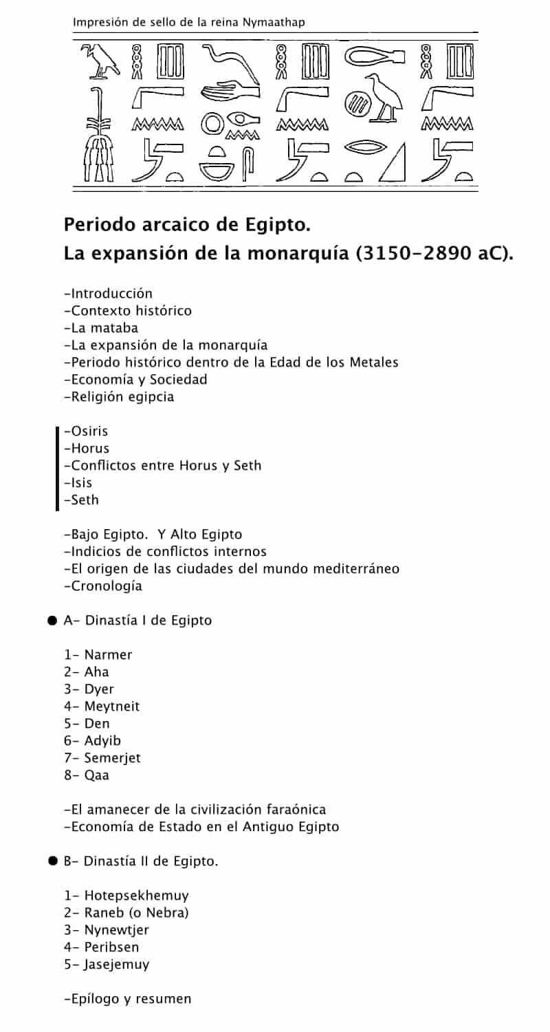 Durante estos primeros siglos del milenio III a. C., Egipto experimenta una serie de transformaciones fundamentales que afectaron tanto a su organización política como a su estructura social, económica y religiosa. Con la unificación del Alto y el Bajo Egipto bajo un único soberano, tradicionalmente identificado con el legendario rey Narmer, comienza una nueva etapa caracterizada por la expansión del poder real, el control del territorio mediante una administración incipiente y la organización de recursos a gran escala. Se establecen prácticas rituales, se normaliza la escritura jeroglífica, y se refuerza la ideología monárquica que acompañará a Egipto durante más de tres mil años.