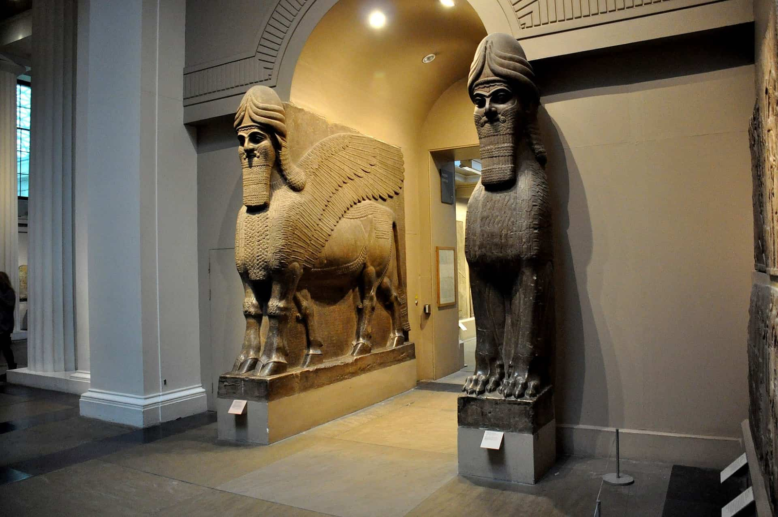 Two lamassus from North-West Palace of Ashurnasirpal II at Nimrud, in modern-day Nineveh Governorate, Iraq, 9th century BC. The British Museum, London. Osama Shukir Muhammed Amin FRCP(Glasg) – Own work. CC BY-SA 4.0. Original file (2,048 × 1,361 pixels, file size: 589 KB)