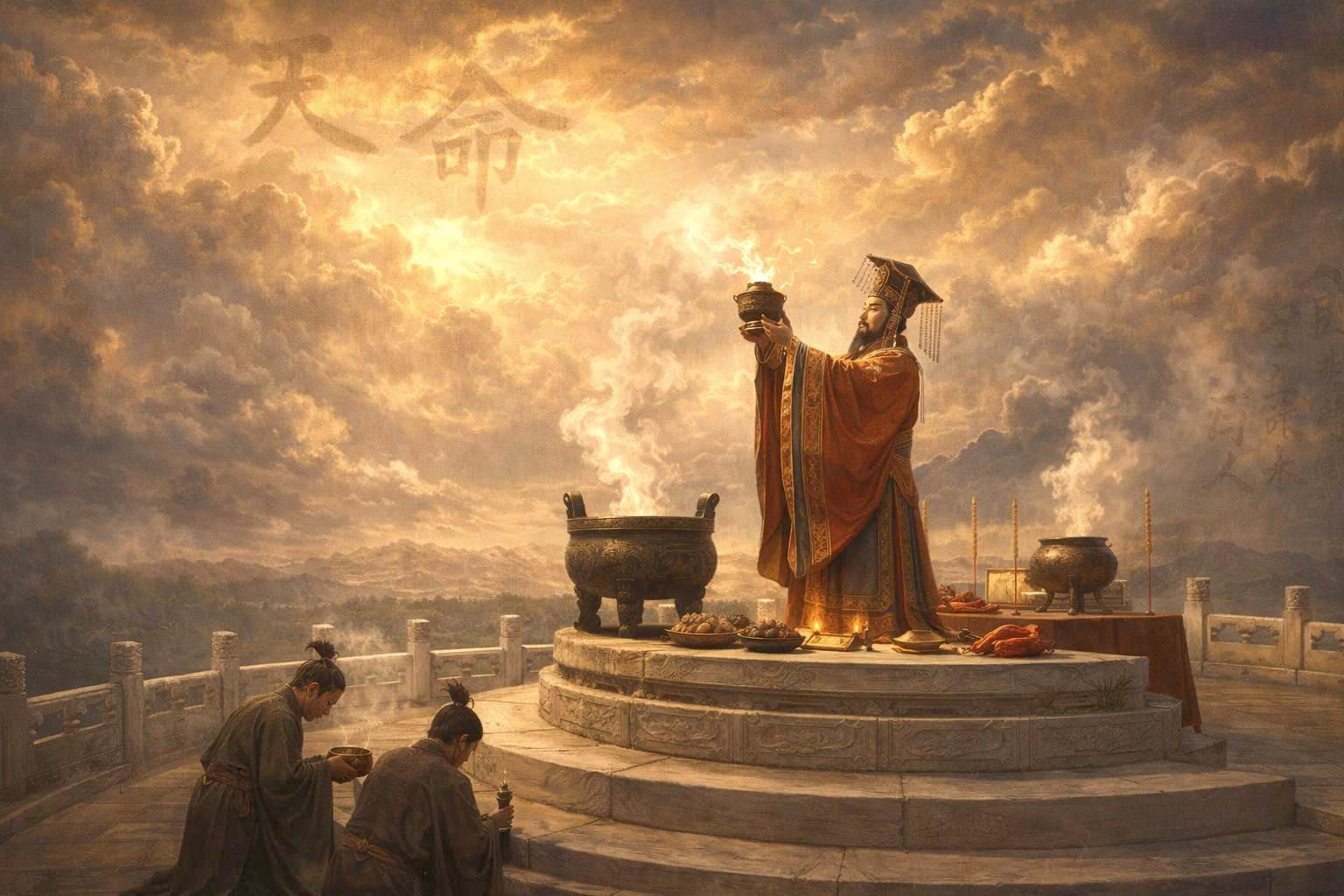 El Mandato del Cielo (Tianming): el poder imperial como legitimidad sagrada y orden moral — Imagen generada con inteligencia artificial (ChatGPT / DALL·E) y editada por el autor del blog.