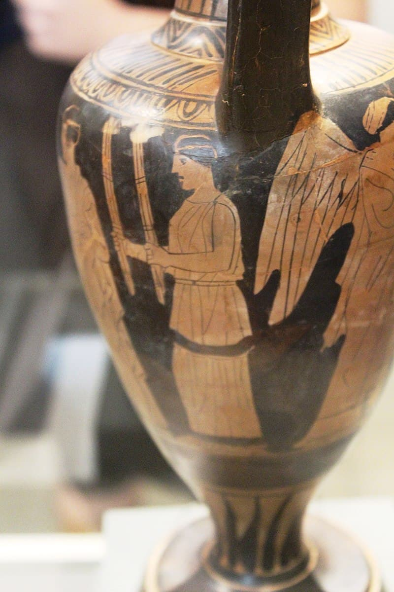 Lékythos ático de figuras rojas (ca. 450 a. C.) — Escena de mujeres en conversación. Expuesto en el Bible Lands Museum, Jerusalén. Foto: Wikimedia Commons (CC BY-SA 4.0). Deror_avi. CC BY-SA 4.0. Original file (3,456 × 5,184 pixels, file size: 7.49 MB).