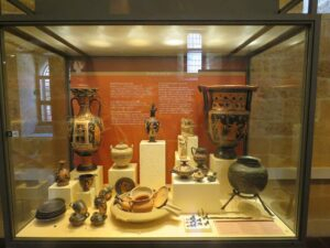 Vitrina dedicada al mundo femenino. Monte Sannace, zona baja, tumba 2, 1957, mediados del siglo IV a. C. Museo Arqueológico Nacional de Gioia del Colle., Italia en la región de Apulia (Puglia). La colección se encuentra en el Castillo normando-suevo de Gioia del Colle, una fortaleza medieval muy bien conservada que alberga la colección. Este … Sigue leyendo Galería de cerámica griega de figuras rojas