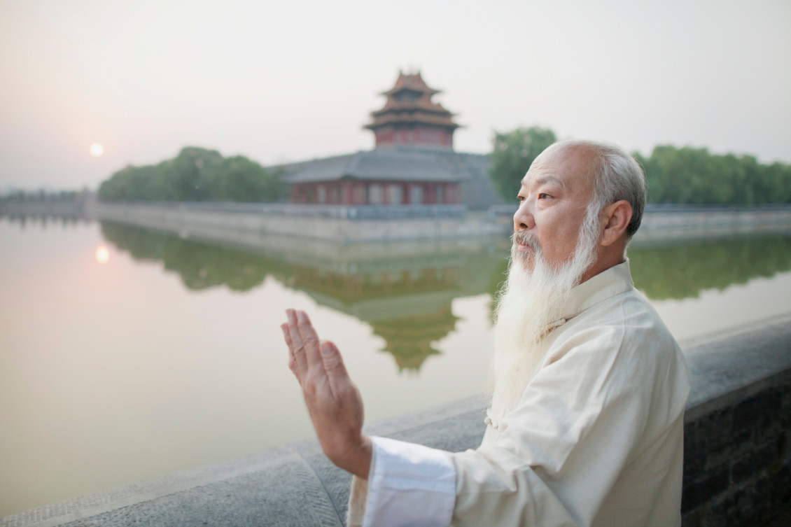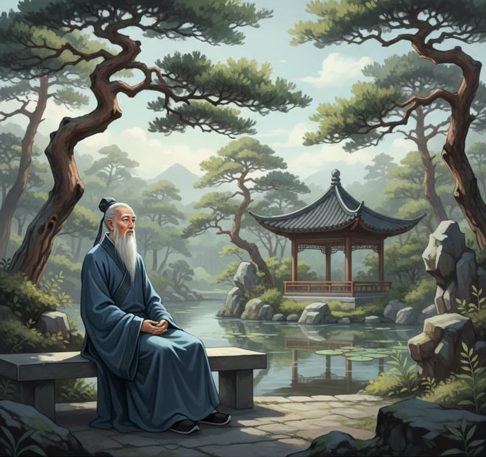 Representación simbólica del legado de la dinastía Zhou: un sabio contempla una ciudad ordenada y armoniosa, imagen de la continuidad ideológica y política de la civilización china — Imagen generada con inteligencia artificial (Gemini).