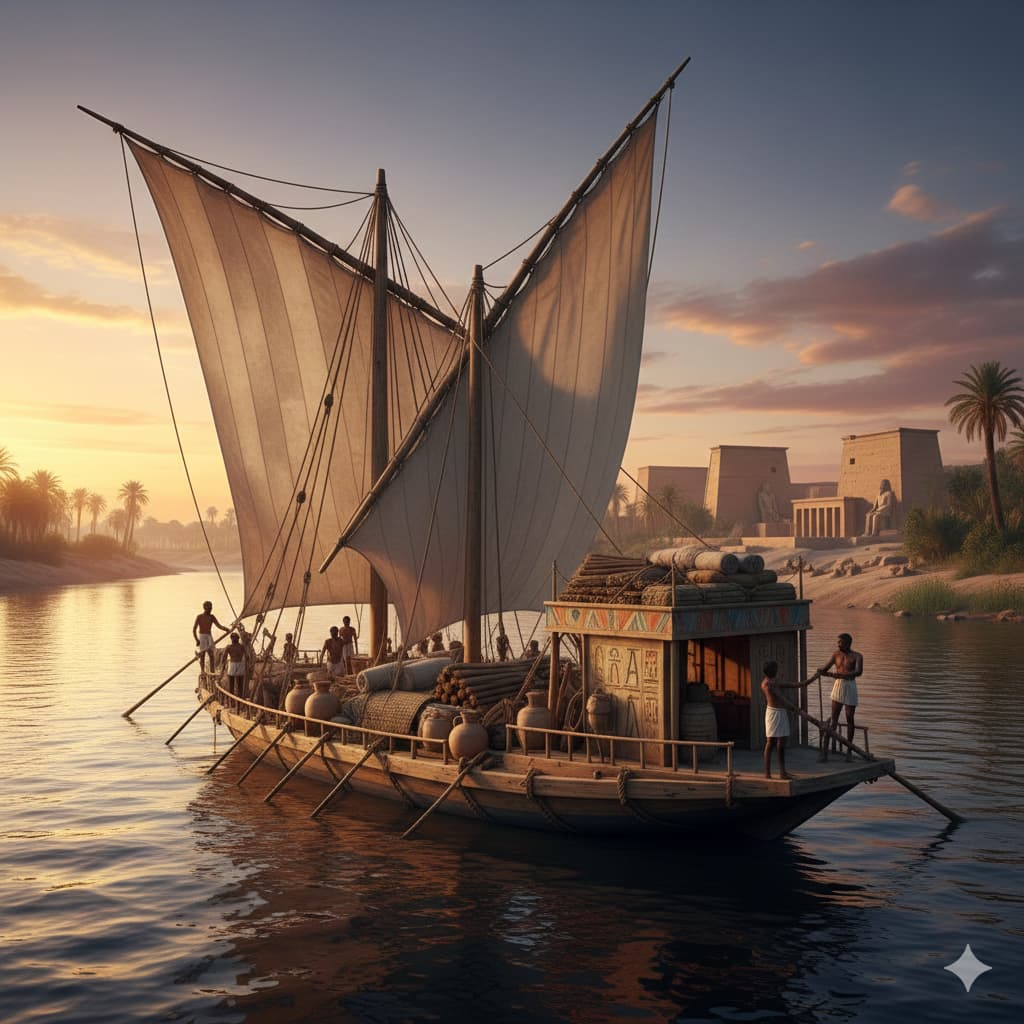 El Nilo fue el auténtico eje logístico del Imperio Nuevo. Sus crecidas anuales garantizaban una agricultura regular y previsible, capaz de sostener una población numerosa y de generar excedentes suficientes para alimentar al ejército, a la administración y a los grandes complejos templarios. Al mismo tiempo, el río funcionó como una vía de comunicación privilegiada: el transporte fluvial era más rápido, seguro y barato que cualquier desplazamiento terrestre, lo que facilitó el control administrativo del territorio, el movimiento de tropas y el traslado de materiales de construcción. El Nilo no solo alimentaba a Egipto; lo articulaba como un espacio político coherente.