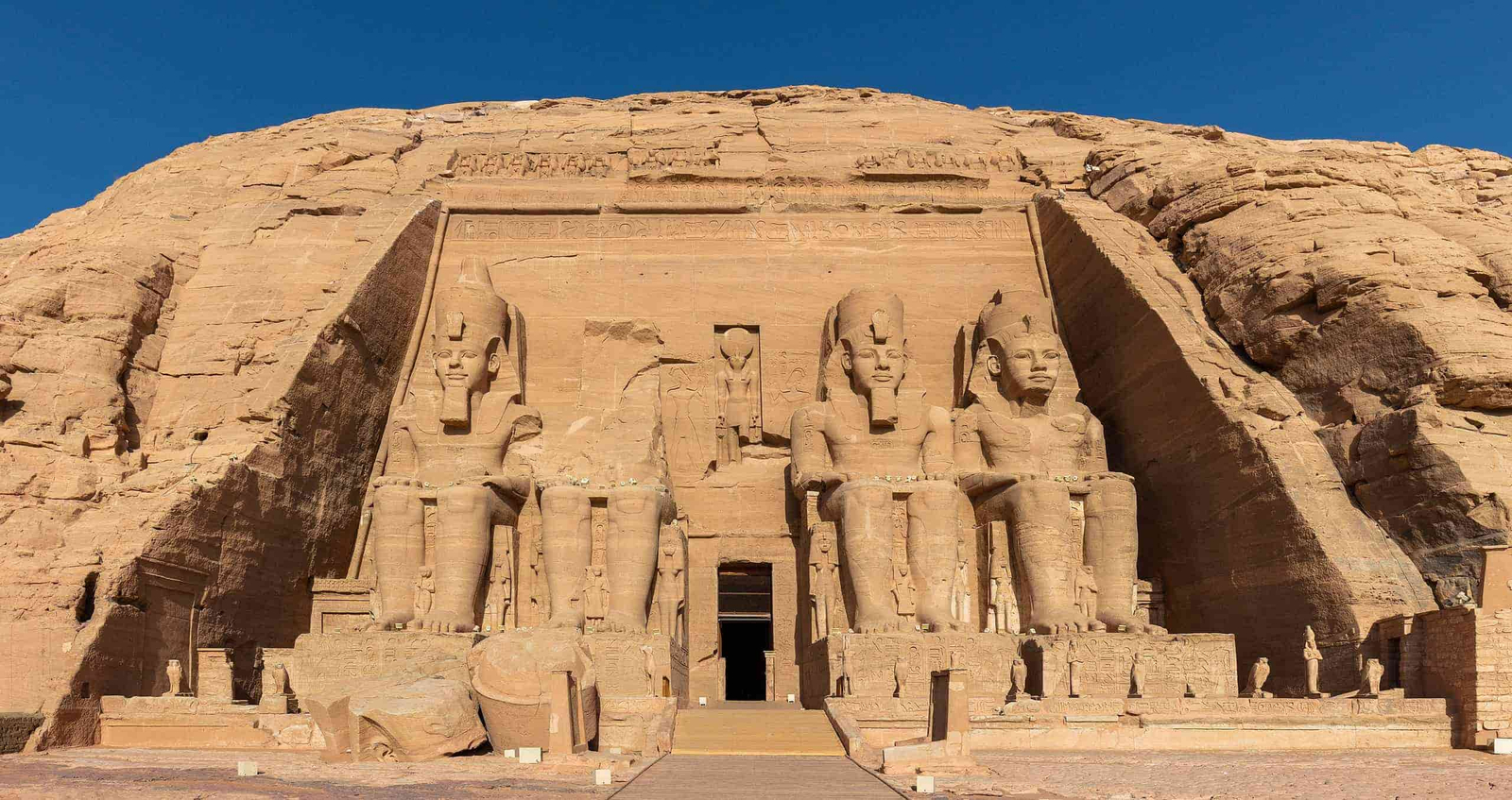 Templo mayor de Abu Simbel, construido bajo Ramsés II (siglo XIII a. C.), uno de los grandes monumentos del Imperio Nuevo de Egipto. Tallado en la roca nubia, el conjunto expresa la fusión entre poder político, religión y propaganda imperial característica de este periodo. Abu Simbel (Dinastía XIX, Imperio Nuevo de Egipto). Monumento emblemático del poder imperial faraónico. Foto: Muhammad yawer. CC BY-SA 4.0. Original file (2,069 × 1,554 pixels, file size: 2 MB).