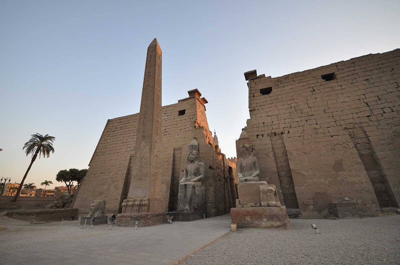 Pilono de entrada del templo de Luxor — Acceso monumental construido por Ramsés II, utilizado durante la Fiesta de Opet como punto de llegada de la procesión ritual desde Karnak. Ejemplo del espacio arquitectónico donde las celebraciones religiosas se hacían públicas y visibles para la población. Fuente: Wikimedia Commons, dominio público. Original file (4,288 × 2,848 pixels, file size: 3.21 MB). User: Thesupermat2.