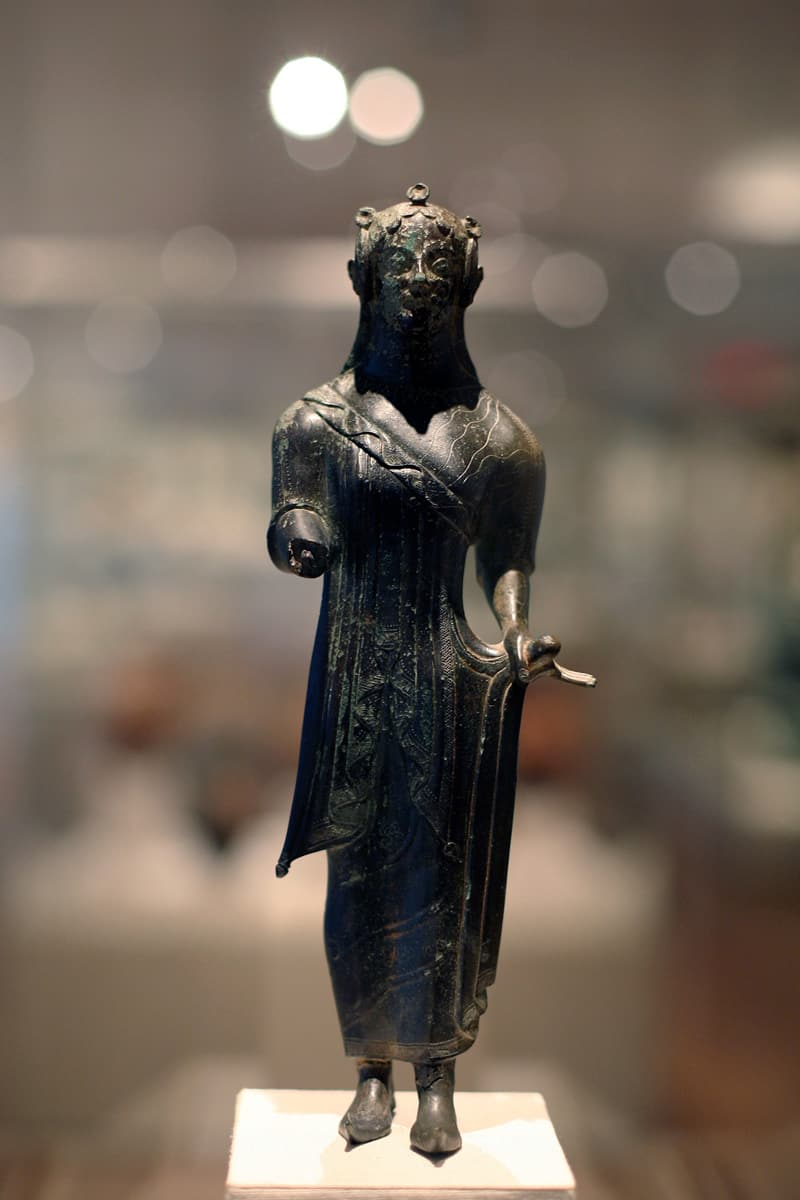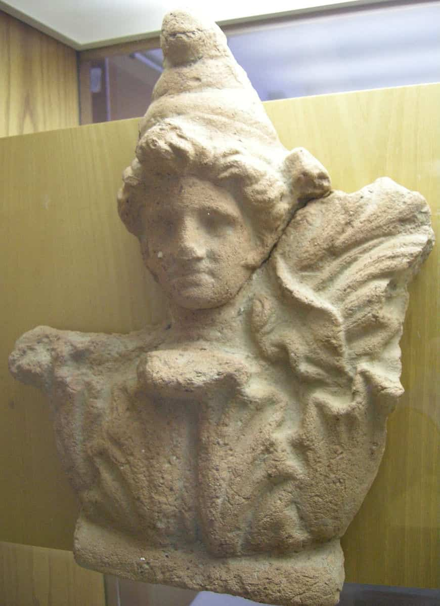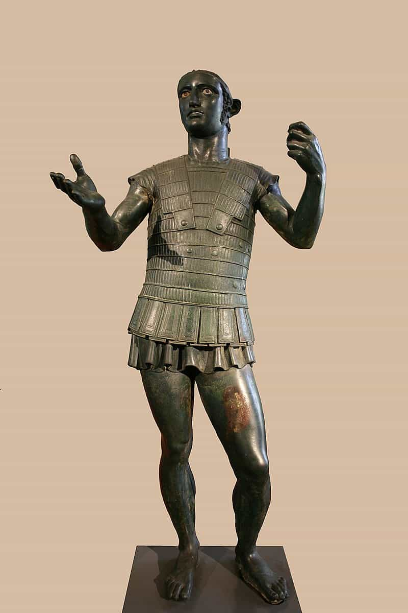 Escultura de un soldado etrusco encontrada cerca de Viterbo. Esá datada en el 500 a. C. PHGCOM – Trabajo propio, photographed at Le Louvre. CC BY-SA 3.0. Original file (1,558 × 2,412 pixels, file size: 571 KB).