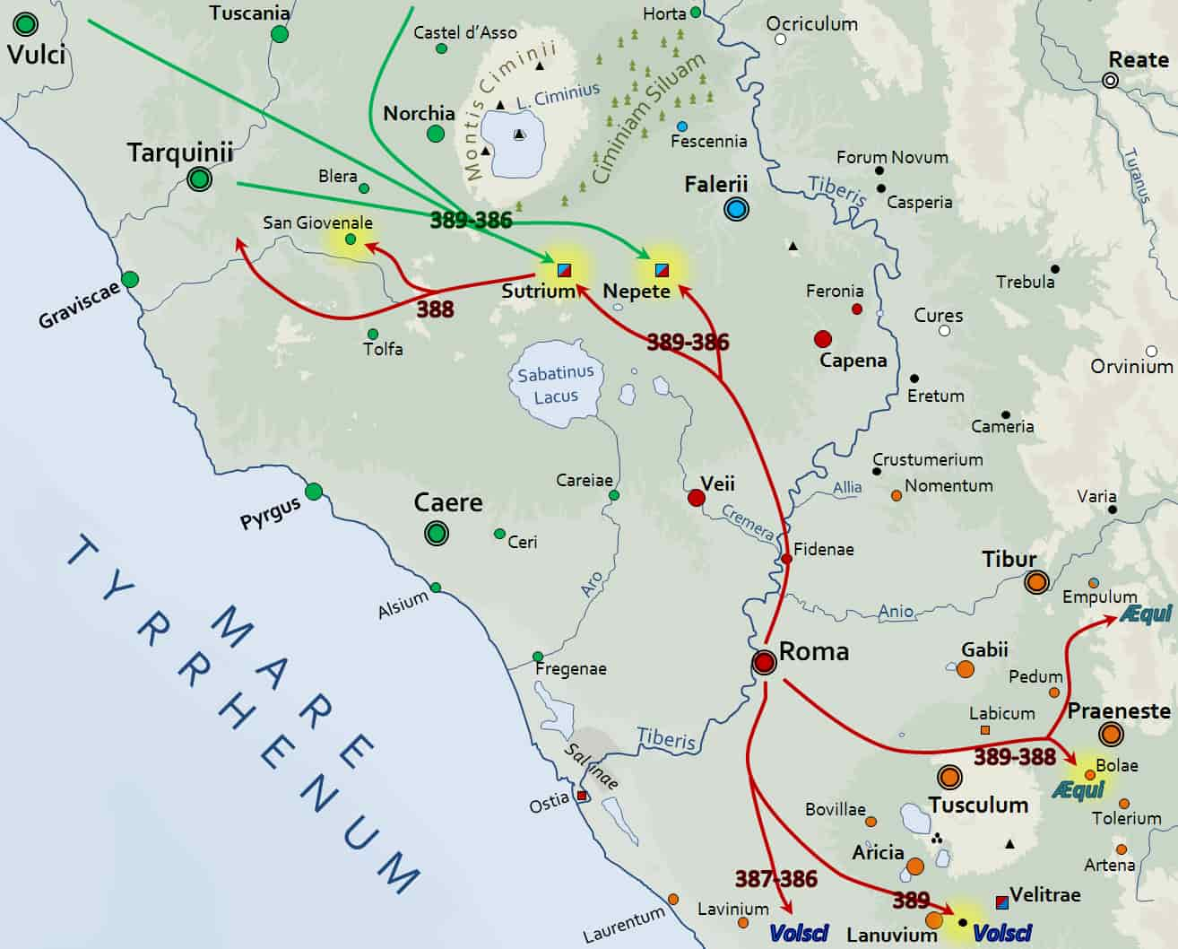 2.4 Combates en Sutri, Nepi y cerca de Tarquinia (389-386 a. C.)