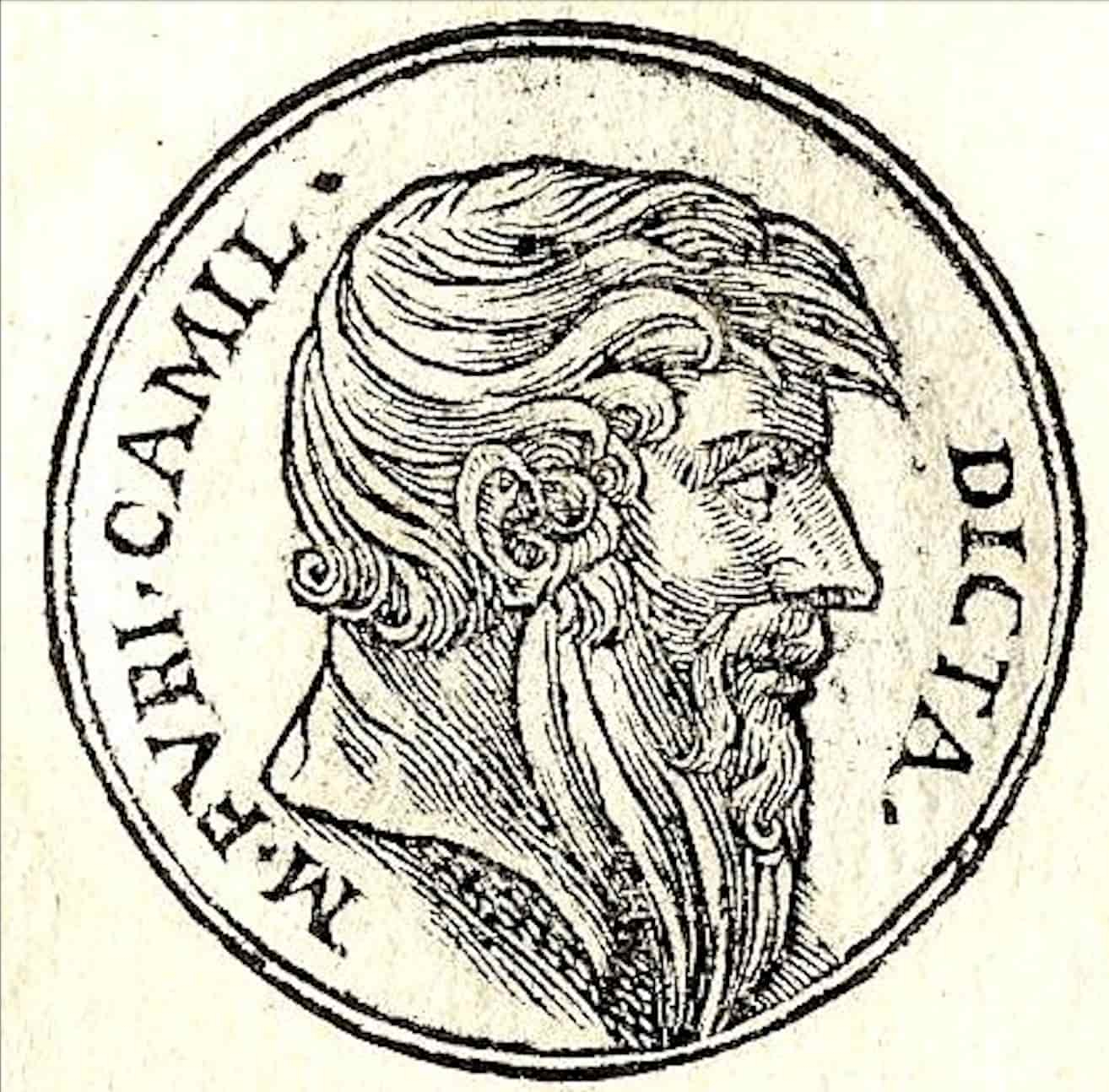 Representación del siglo XVI de Marco Furio Camilo. Published by Guillaume Rouille (1518?-1589) – «Promptuarii Iconum Insigniorum» Marcus Furius Camillus was a Roman soldier and statesman of patrician descent. Dominio público