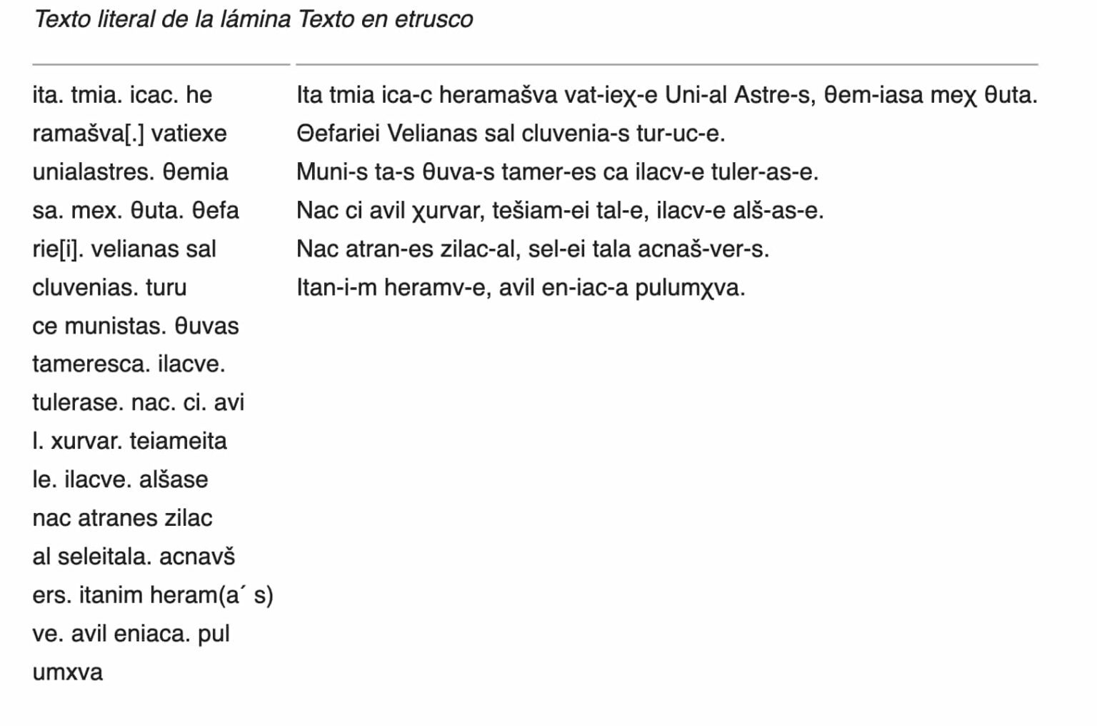 - Lengua etrusca en Lingvae Imperii.