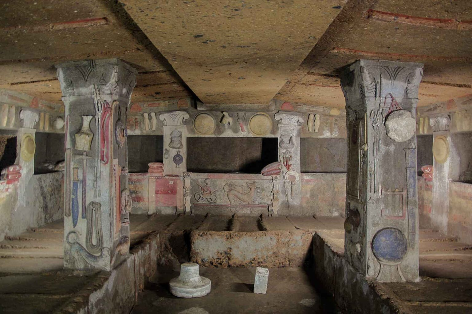 Los etruscos creían en la vida de ultratumba, de ahí las manifestaciones de gran importancia en los lugares de enterramiento.