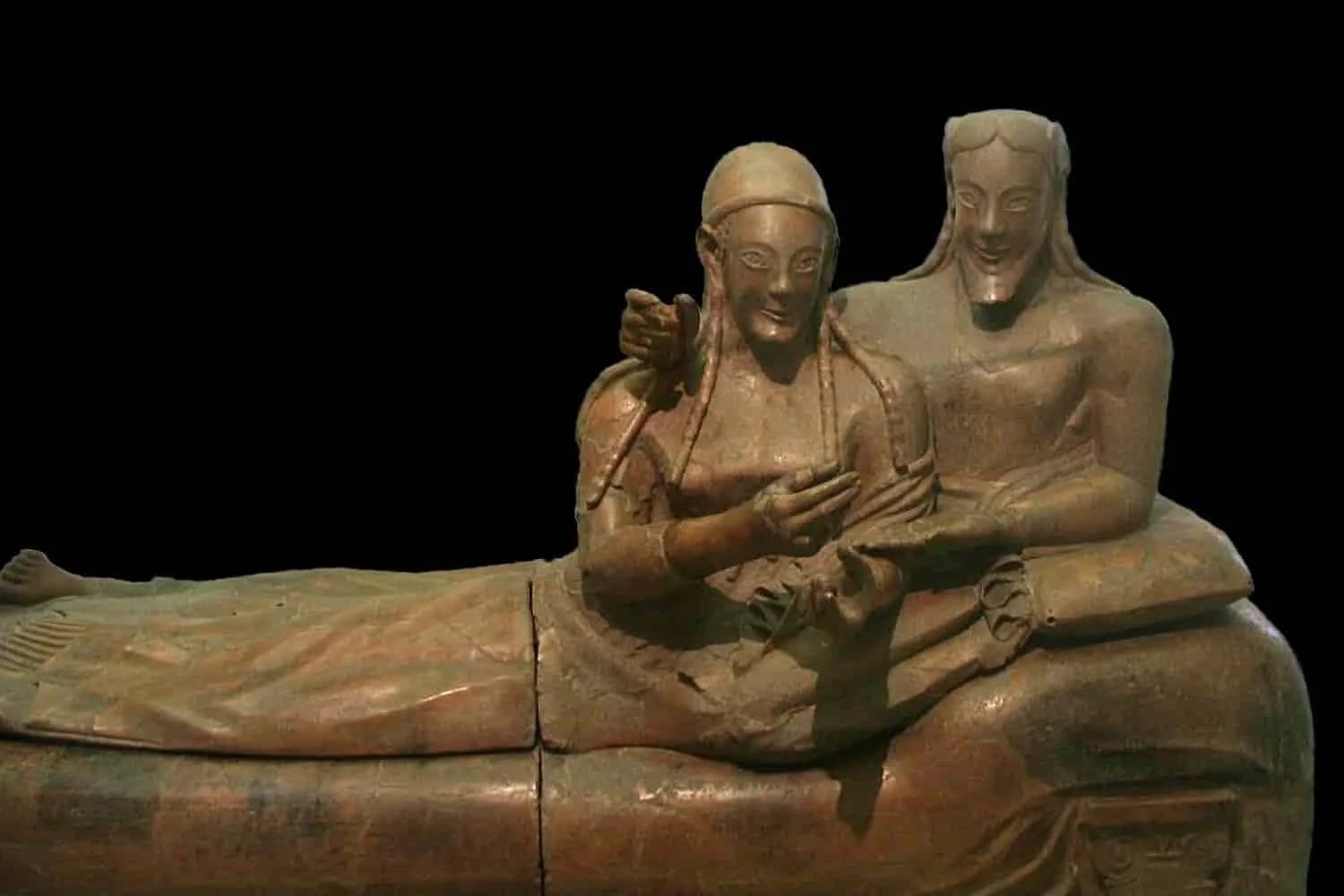 El origen de los etruscos ha sido objeto de polémica desde la antigüedad. Heródoto creía que eran los descendientes de poblaciones procedentes de Anatolia antes del año 800 a. C., que desplazaron a los habitantes anteriores, (Ver: Barral i Altet (1987) p.228), aunque Dionisio de Halicarnaso los tenía como autóctonos. La investigación moderna tampoco ha llegado a un consenso y los expertos acabaron considerando este tema insoluble, pasando a estudiar, cómo la sociedad estaba organizada, antes que de dónde venían. (ver: Borrelli y Targia, (2003) p.6). Lo que se sabe con certeza es que a mediados del siglo VII a. C. sus principales ciudades ya habían sido fundadas, iniciando enseguida un periodo de expansión territorial que acabó por dominar una gran región más o menos en el centro de la península itálica, abarcando desde Véneto y Lombardía a Lacio y Campania, lo que se ha denominado Etruria. (ver: Staccioli, (1993) p.5). Sin embargo, en los siglos siguientes sus conquistas fueron amenazadas y varios pueblos itálicos consiguieron hacer remitir sus avances. Por último, sus últimos bastiones fueron tomados por los romanos, que absorbieron su cultura y causaron su disolución. En su apogeo, los etruscos eran el pueblo más poderoso de la Italia prerromana y establecieron una civilización próspera con una gran producción agrícola, una poderosa flota, un comercio floreciente que cubría gran parte del Mediterráneo y una cultura única, donde el arte tuvo un gran papel, influyendo de forma importante en la formación inicial del arte de la Antigua Roma.