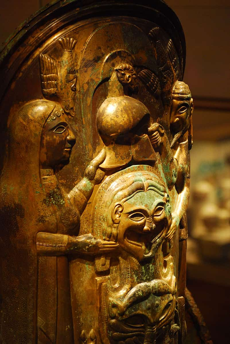 Carro de bronce con incrustaciones de marfil etrusco del segundo cuarto del siglo VI a. C. Encontrado cerca de Monteleone di Spoleto en 1902 con escenas de Aquiles. Autor: Mary Harrsch from Springfield, Oregon, USA. (MET Museum). CC BY 2.0.