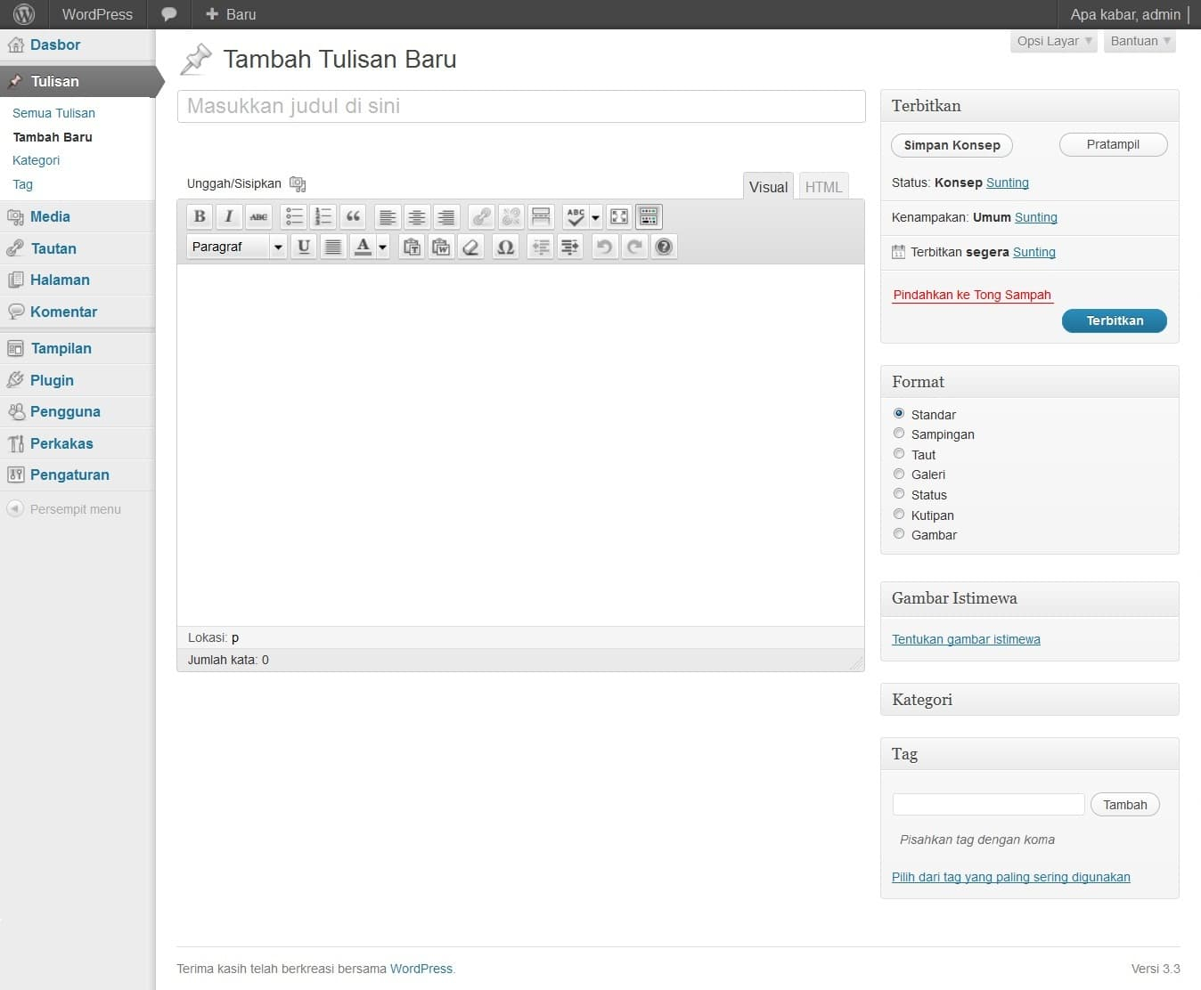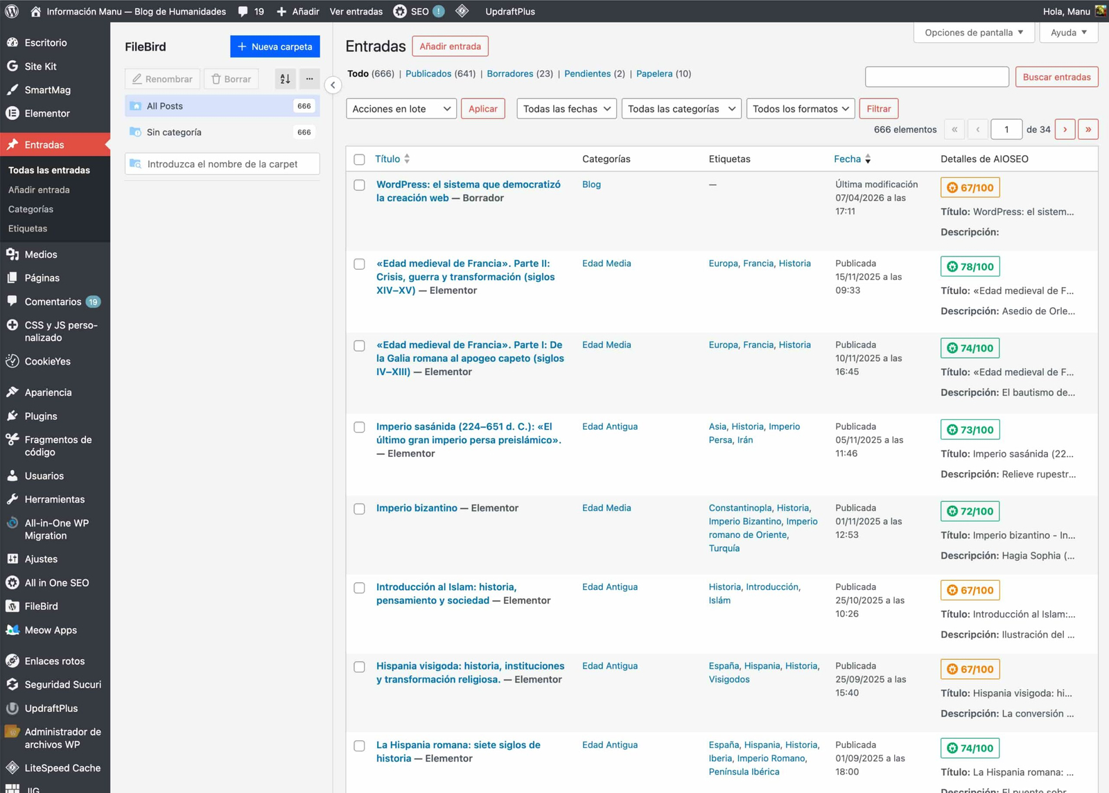 Interfaz de gestión de contenidos en WordPress — Captura del autor.
