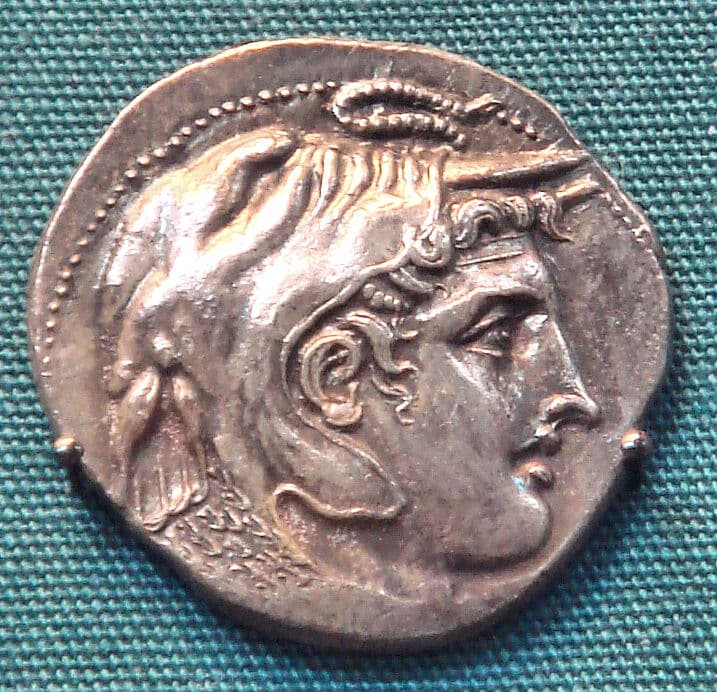 Las monedas acuñadas por sus sucesores, especialmente los Ptolomeos y los Seléucidas, consolidaron su imagen como una figura casi divina. Aparece a menudo con cuernos de carnero, símbolo del dios Amón, subrayando su supuesta filiación divina tras su visita al oráculo de Siwa. En otros casos, se lo representa con una diadema real o con elementos que lo vinculan a Heracles, como la piel de león, reforzando su carácter heroico y legitimador.
