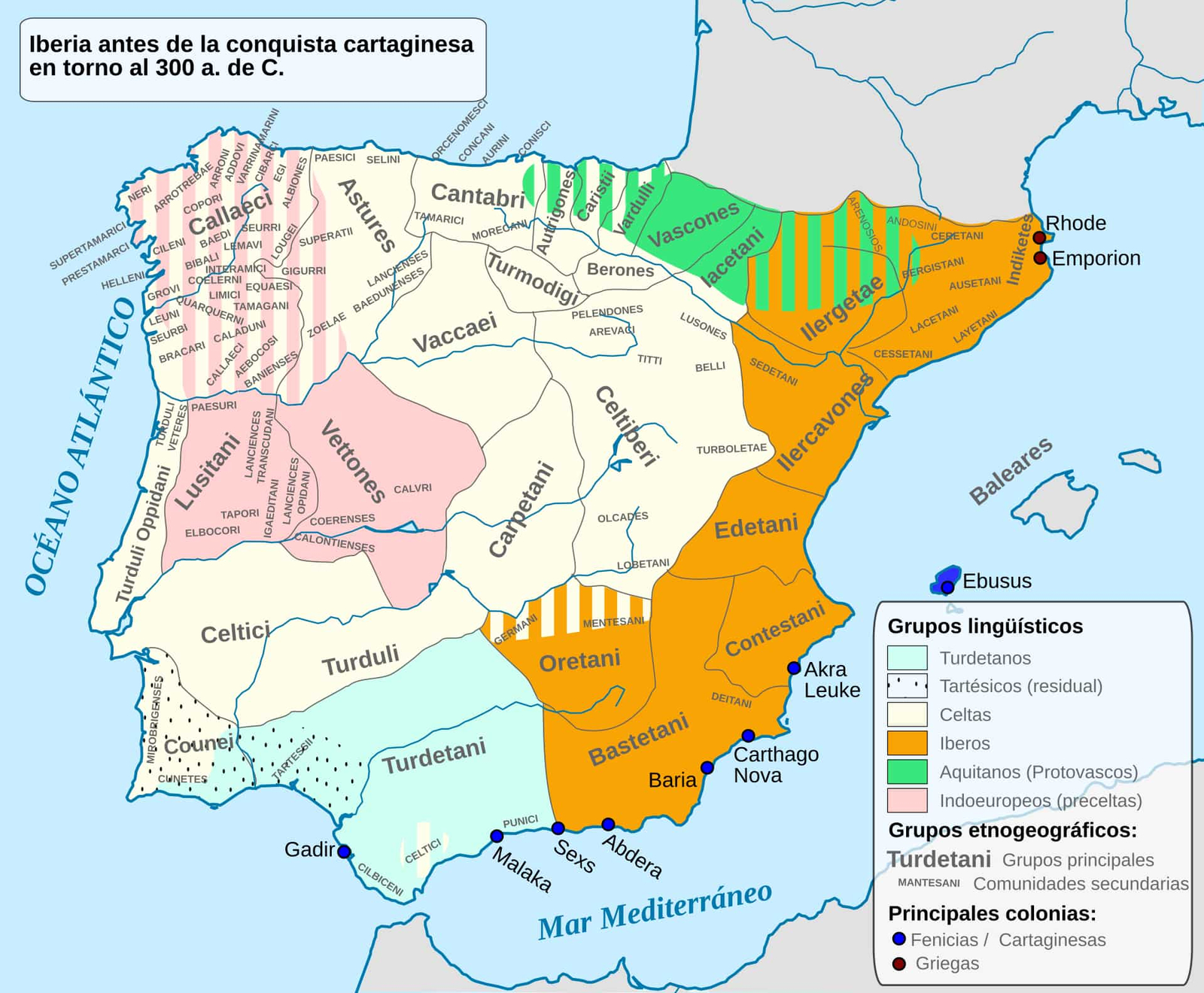 - Mapa con la distribución de lenguas en Iberia, ca. 250 a. C.