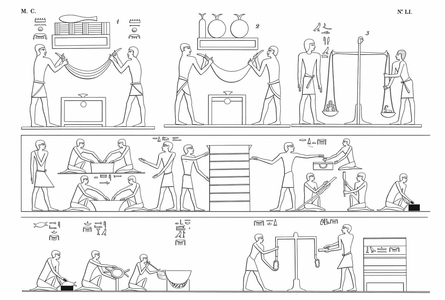 Esa legitimidad se proyectaba sobre todas las instituciones. La administración, los templos, la recaudación, los juicios y las grandes obras públicas no eran piezas aisladas, sino expresiones complementarias de un mismo sistema. El escriba que registraba cosechas, el sacerdote que celebraba un rito, el juez que resolvía un conflicto o el funcionario que organizaba trabajos colectivos participaban, cada uno a su manera, en la conservación del orden general. En Egipto, gobernar no era solo mandar, sino articular una red de funciones que unían lo material y lo simbólico.