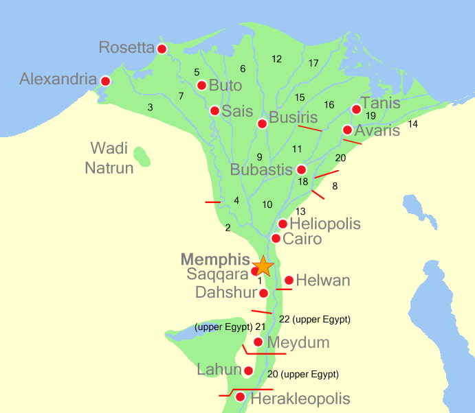 Entre las ciudades más destacadas del norte sobresale Menfis, situada cerca del punto donde el valle se abre hacia el delta. Su posición era estratégica: controlaba el paso entre ambas regiones y durante largos periodos fue capital política y gran centro administrativo. Cerca de esa zona también aparece Heliópolis, famosa por su tradición religiosa solar y por la influencia intelectual de sus sacerdotes. Más al norte, en el delta, ciudades como Sais, Bubastis, Tanis o Avaris tuvieron relevancia en diferentes dinastías, especialmente cuando el peso político se desplazó hacia la región deltaica o cuando Egipto intensificó sus contactos con Asia occidental.