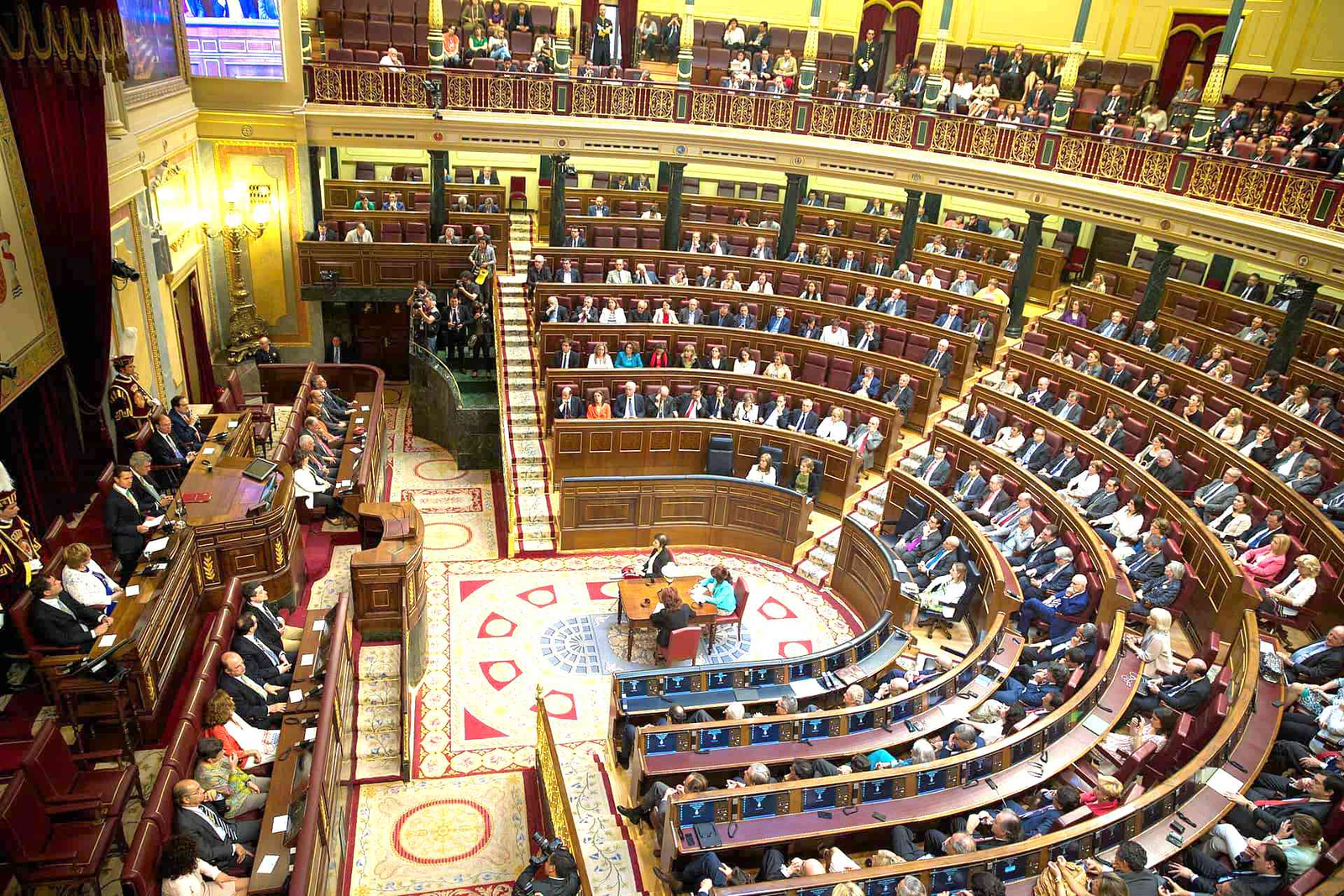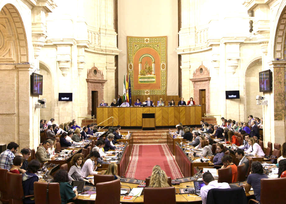Sesión plenaria en el Parlamento de Andalucía, sede del poder legislativo autonómico — Fuente: Wikipedia, autor original en Wikimedia Commons, licencia Creative Commons. CC BY 2.0. Original file (2,900 × 2,071 pixels, file size: 980 KB).