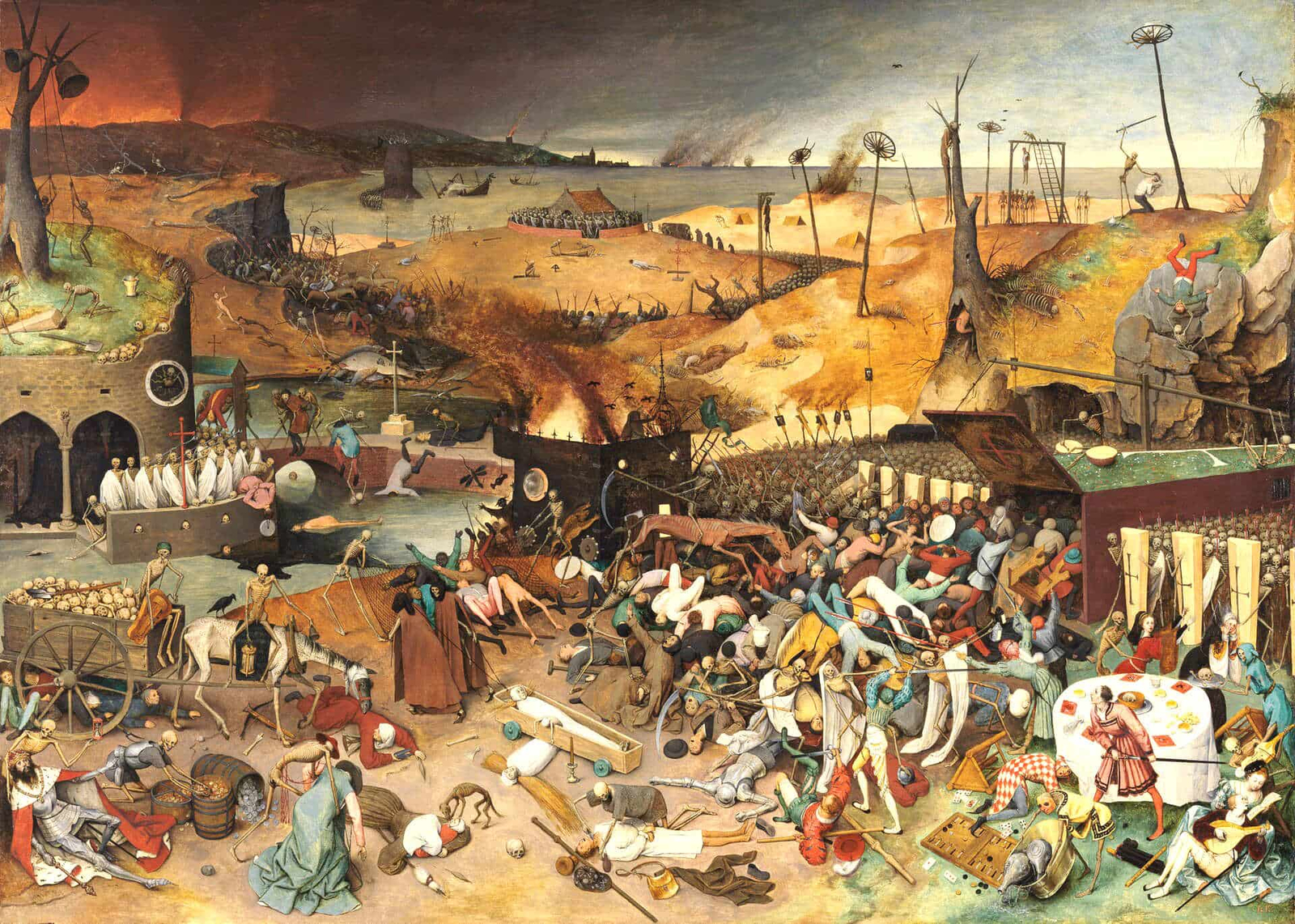 El triunfo de la muerte, de Pieter Bruegel el Viejo (c. 1562). Aunque posterior a la Peste Negra, la obra refleja con fuerza simbólica el clima de devastación, inseguridad y conciencia de fragilidad que marcó la Europa del siglo XIV. — Fuente: Wikipedia. Dominio público. Pieter Brueghel el Viejo – Museo del Prado. Dominio Público. Original file (2,126 × 1,517 pixels, file size: 1.61 MB).